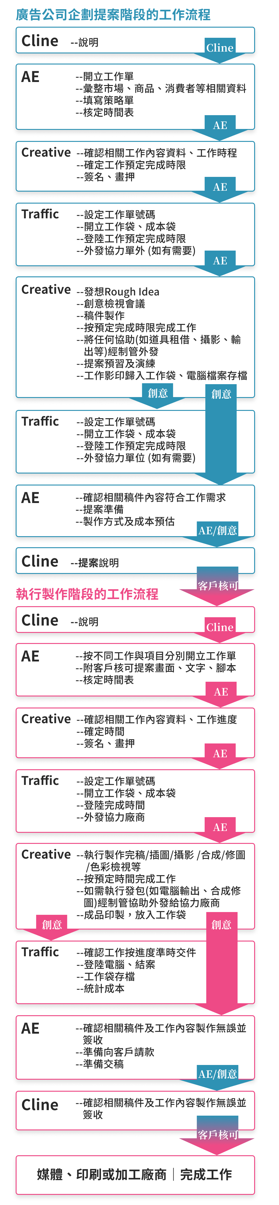 廣告主→廣告公司→廣告媒體→協力→廣告受眾