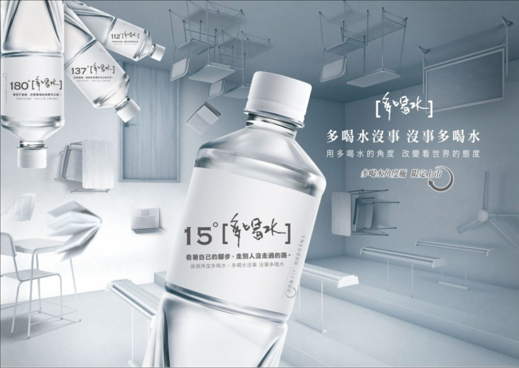 換個角度看世界,是一種積極的人生態度。是一種主動的心態,從積極、樂觀的角度,看待事物對自己有利的一面,讓自己活出快樂人生。【多喝水】推出共7款「角度瓶」,其中3款更與知名網紅三原慧悟、HOWHOW和白癡公主聯名合作,以簡單俏皮且正能量的話語為年輕人加油打氣!上市後不但引發消費者在社群平台上的分享,更吸引消費者尋找與收藏。