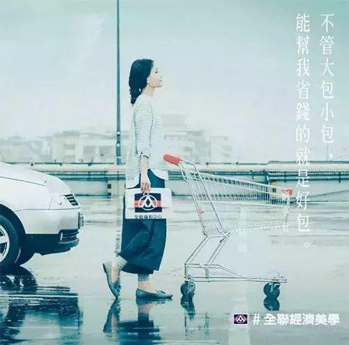 2016年的全聯經濟美學,同樣有著設計過的文案,但從廣告的內容中,似乎也看出來了一些調整,包括相對搶眼的「袋子」,還有文案也比較平實易懂些,廣告主角雖然也與過往超市主角的家庭主婦有很大的不同,但好像也沒有去年那麼「鮮明」,應該是在策略上有些調整,相較2015年的完全年輕風格,2016年有點往務實方向調整的感覺。