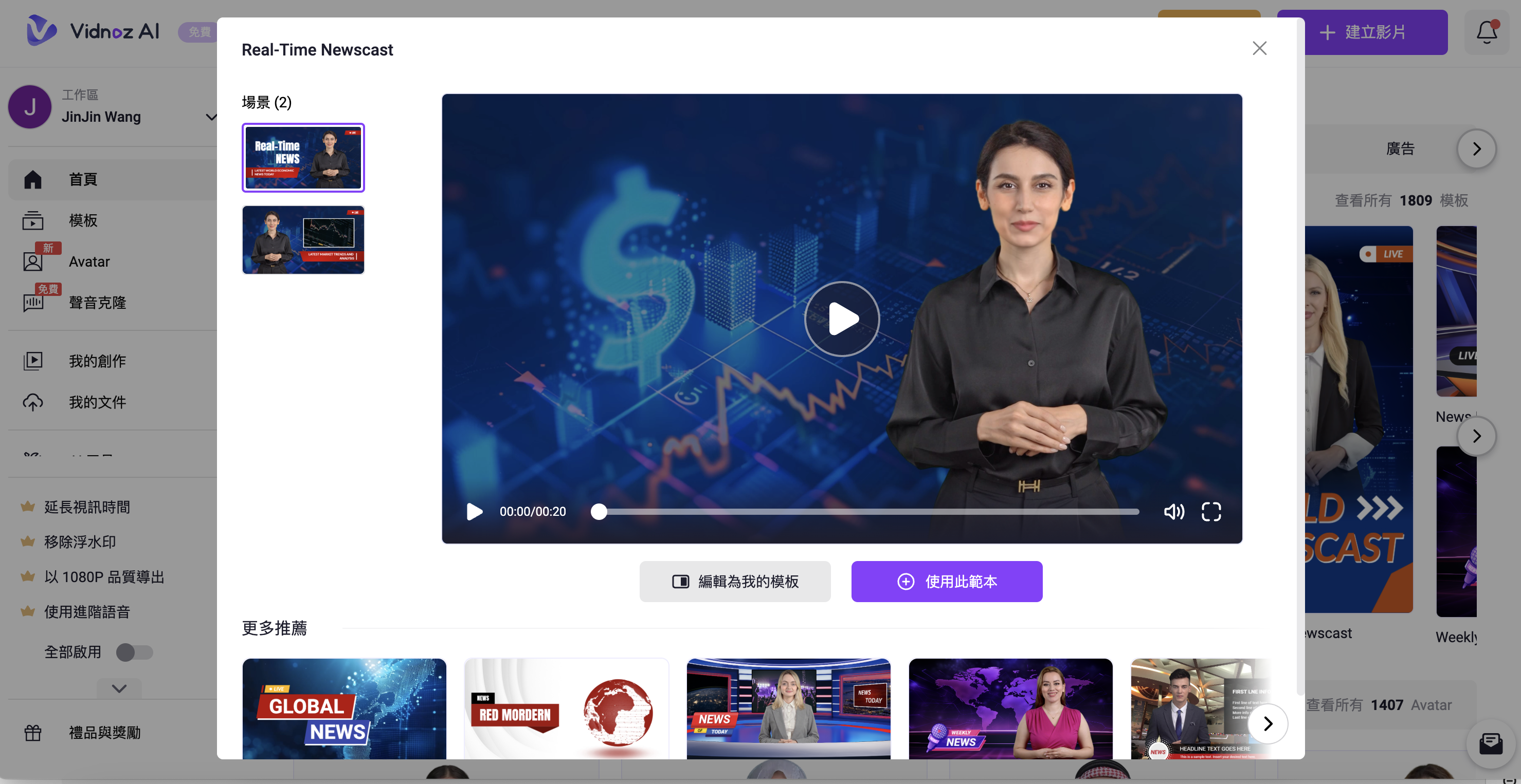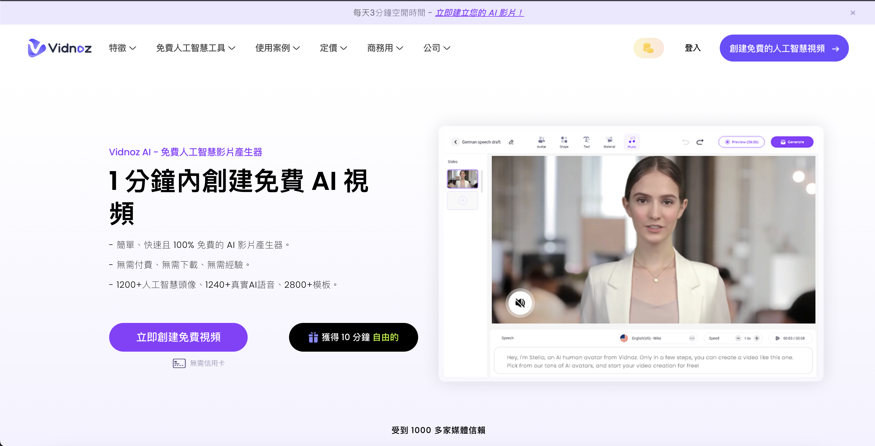 Vidnoz AI |AI虛擬主播影片製作