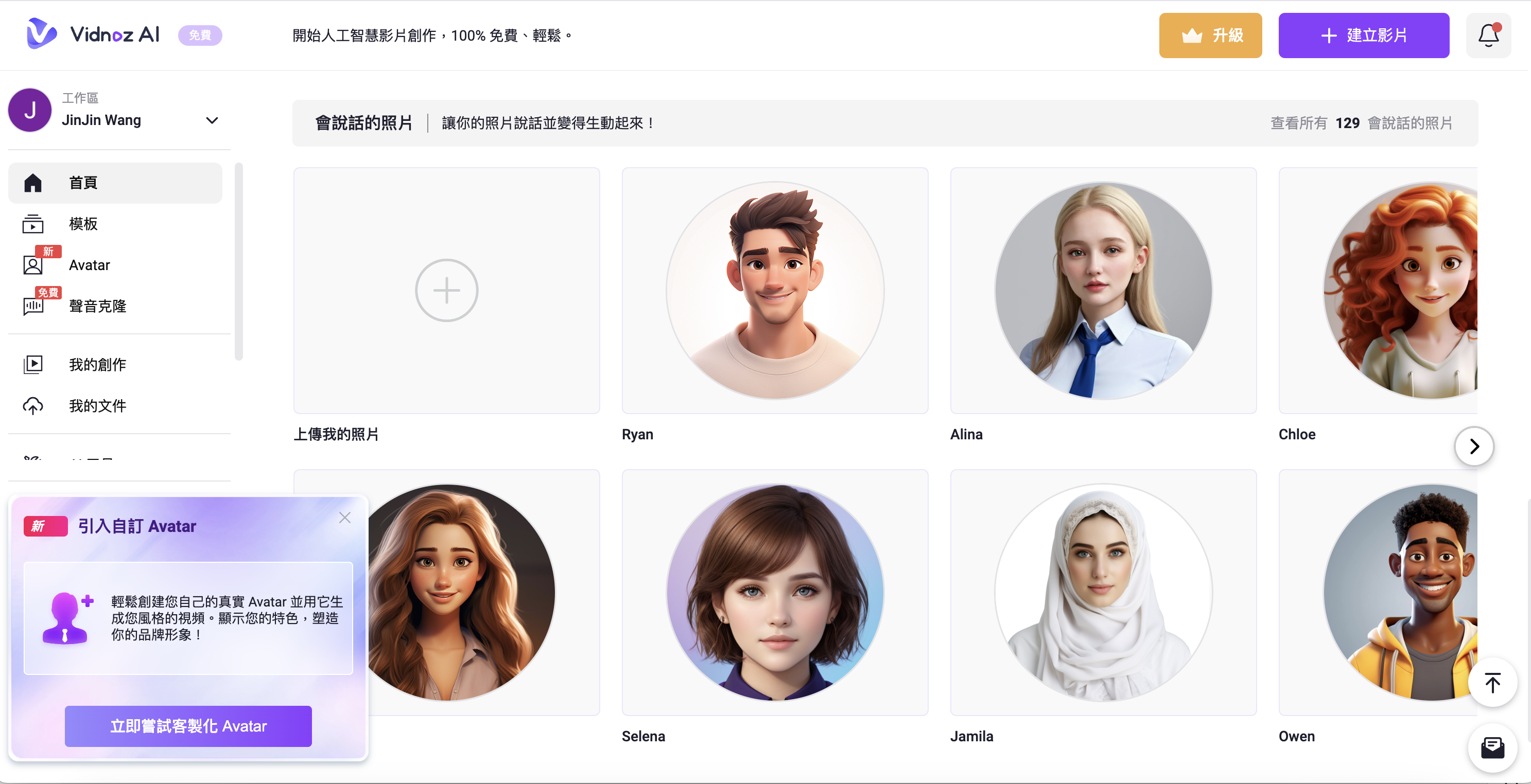 請以自己期中作業的主題製作,替換自己的頭像及圖片,製作完畢,下載影片,上傳雲端空間,請自行開 Vidnoz AI |作業資料夾,上傳作業