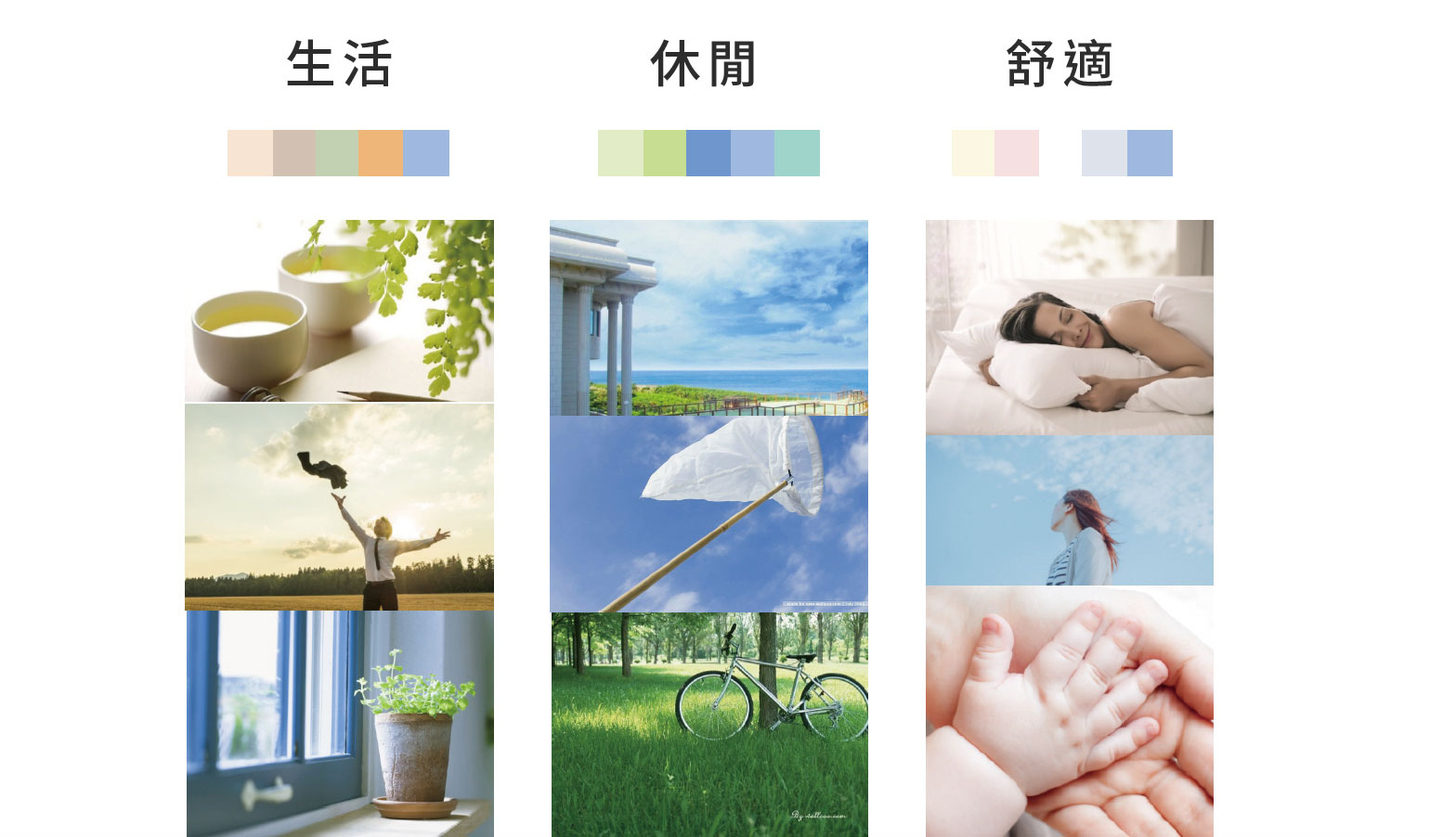 - 範例一:『日安』原生關鍵字:生活、休閒、舒適