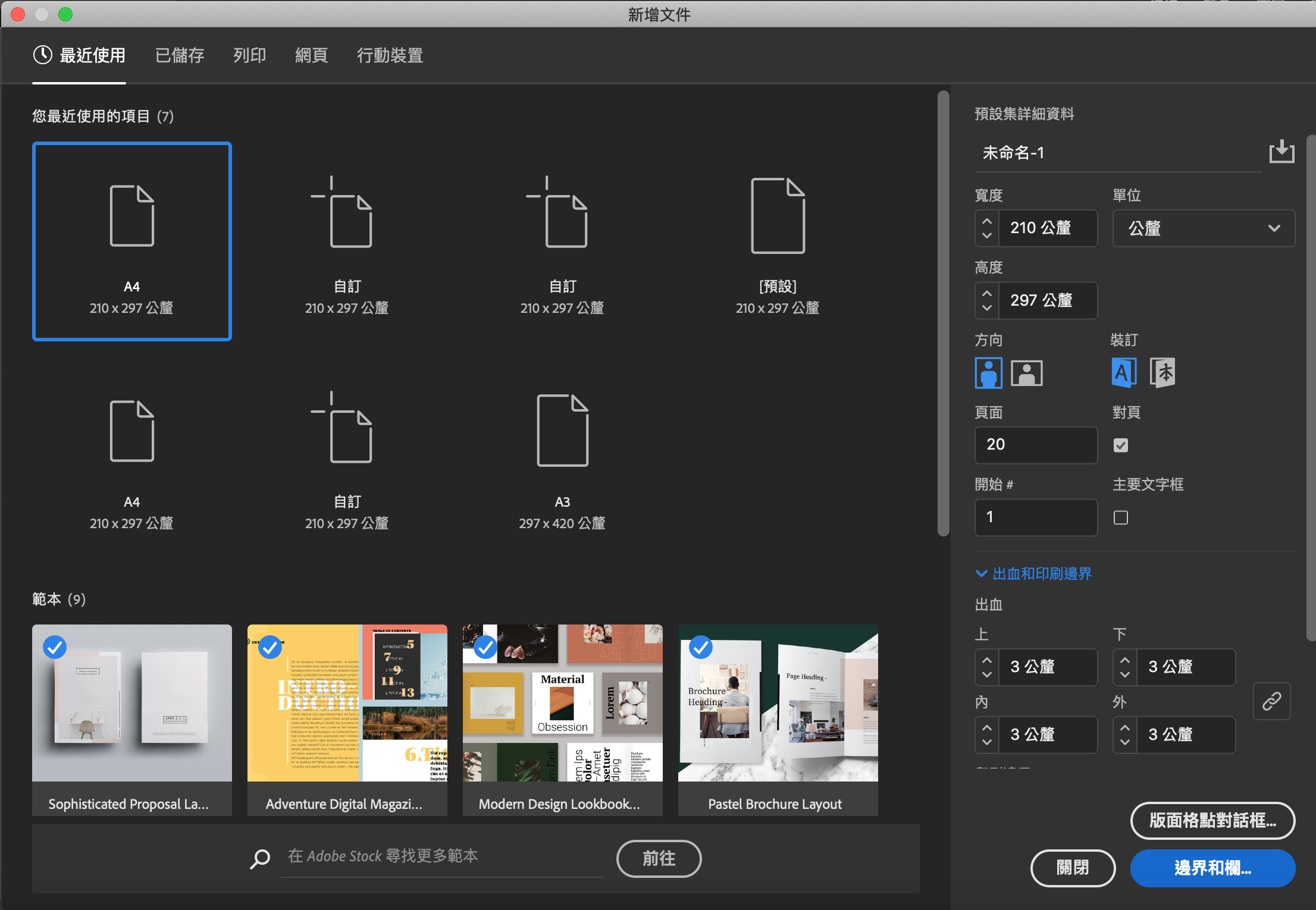 使用軟體:Adobe InDesign 2021,若使用較舊版本,則需降轉IDML後,才能讀取。 學習內容與步驟如下:建立期末多頁檔案