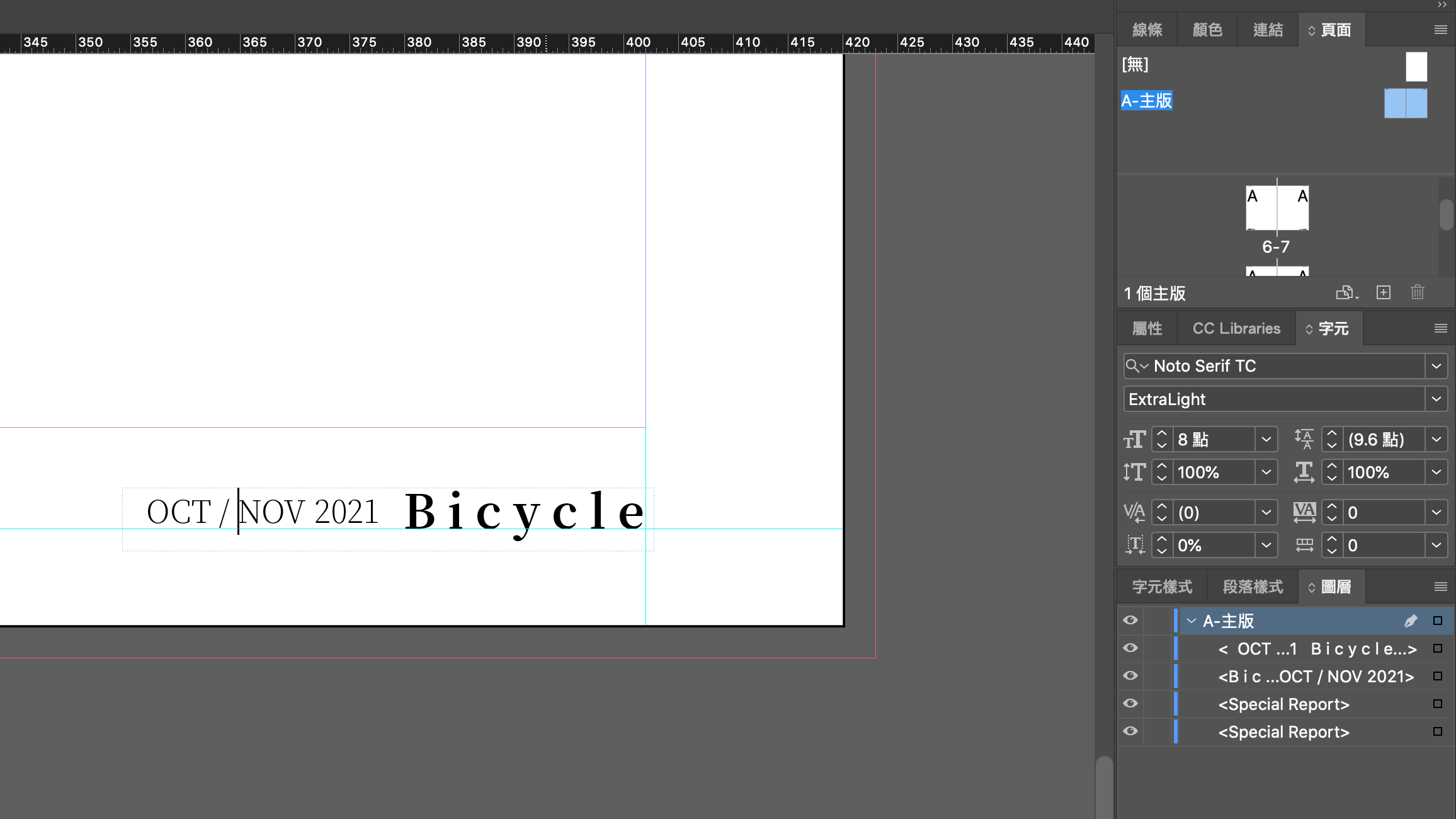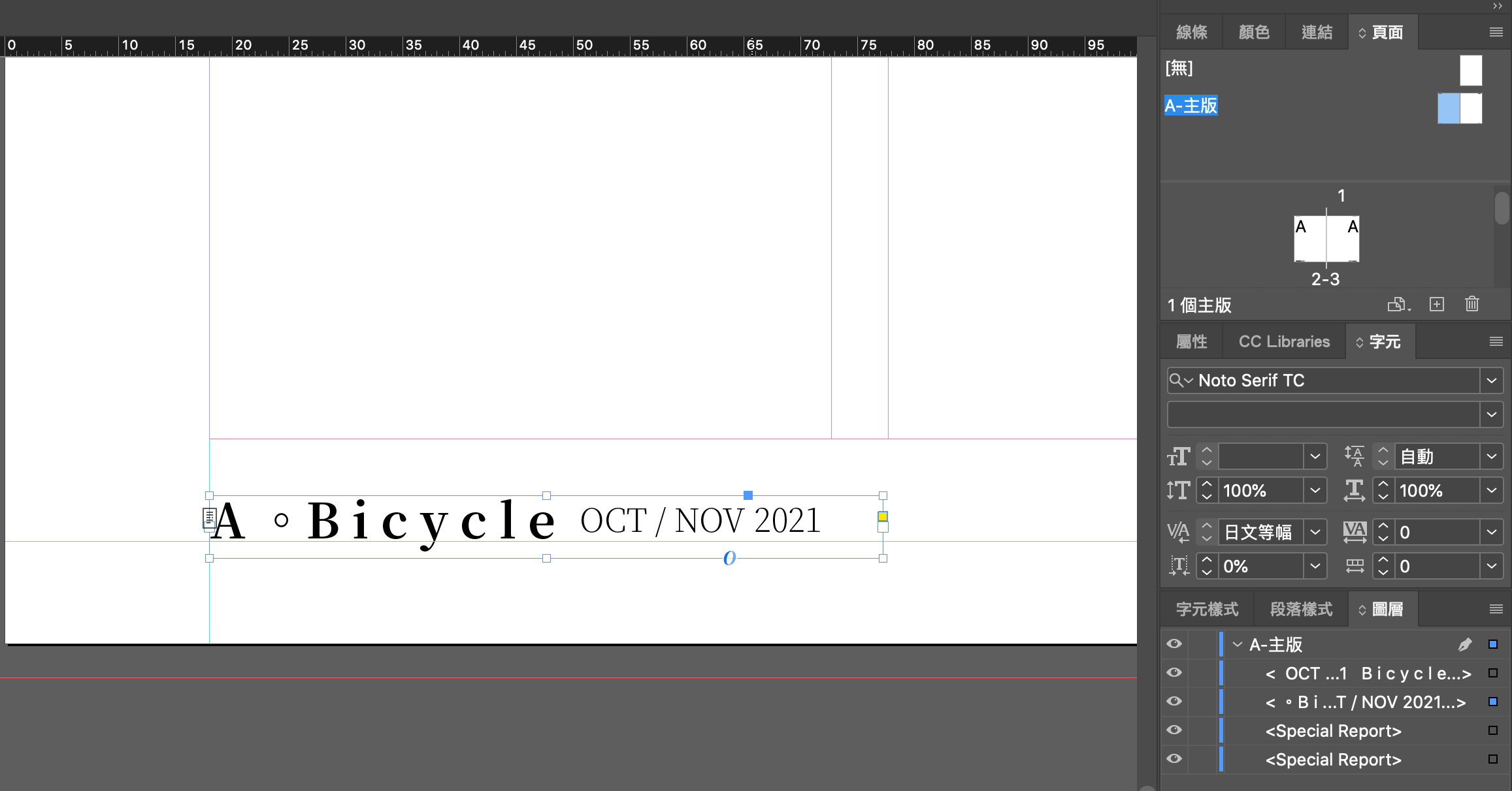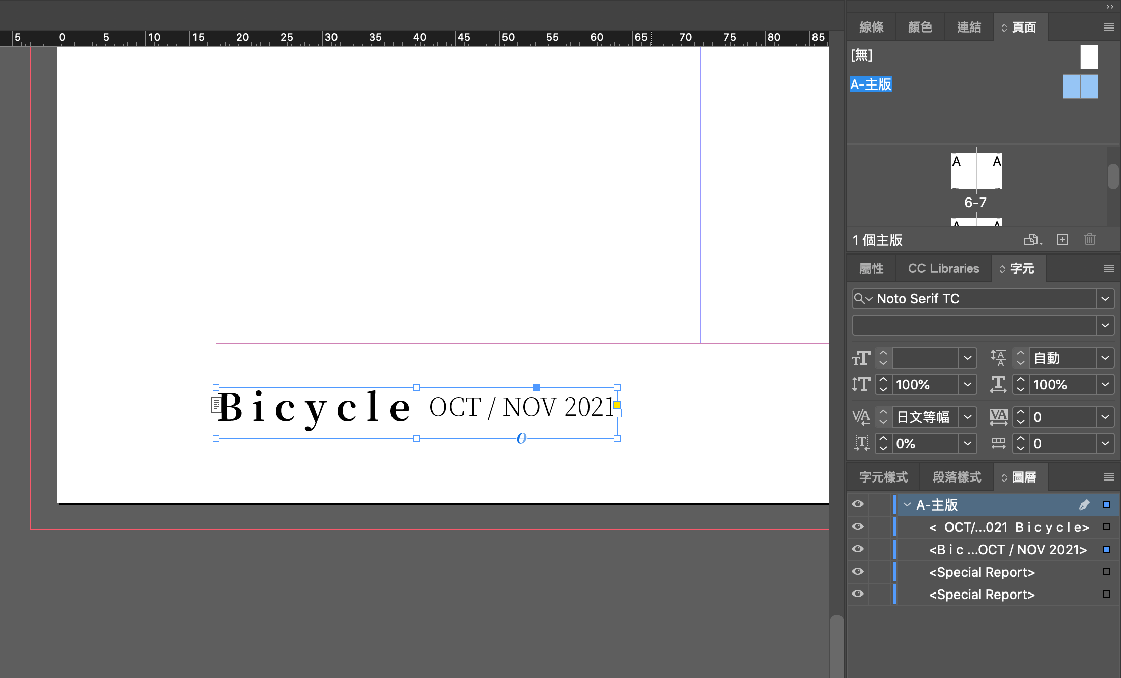 左右兩邊皆需設定,將位置稍做調整,記得拉參考線對齊,並設定其文字粗細對比關係。