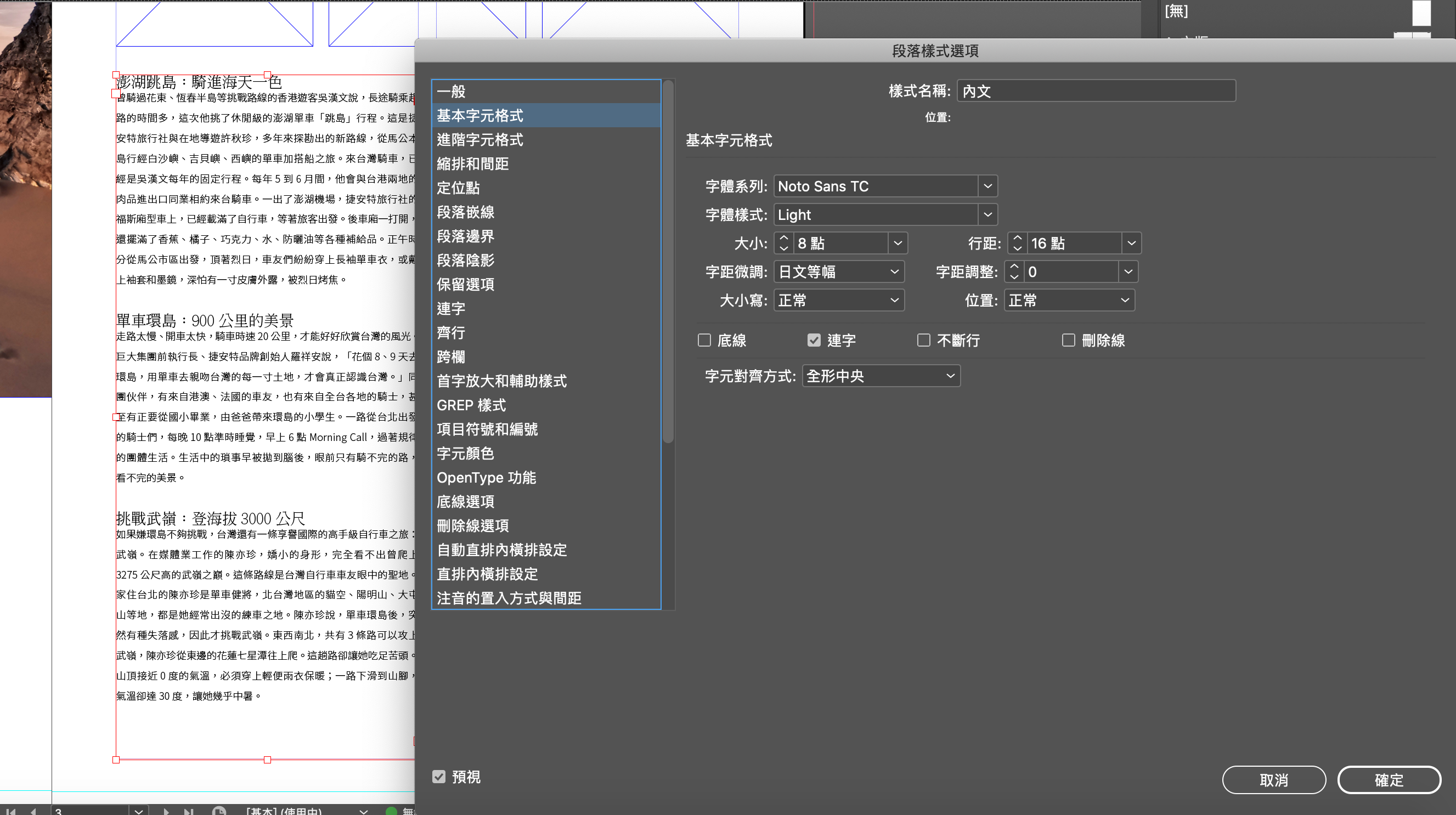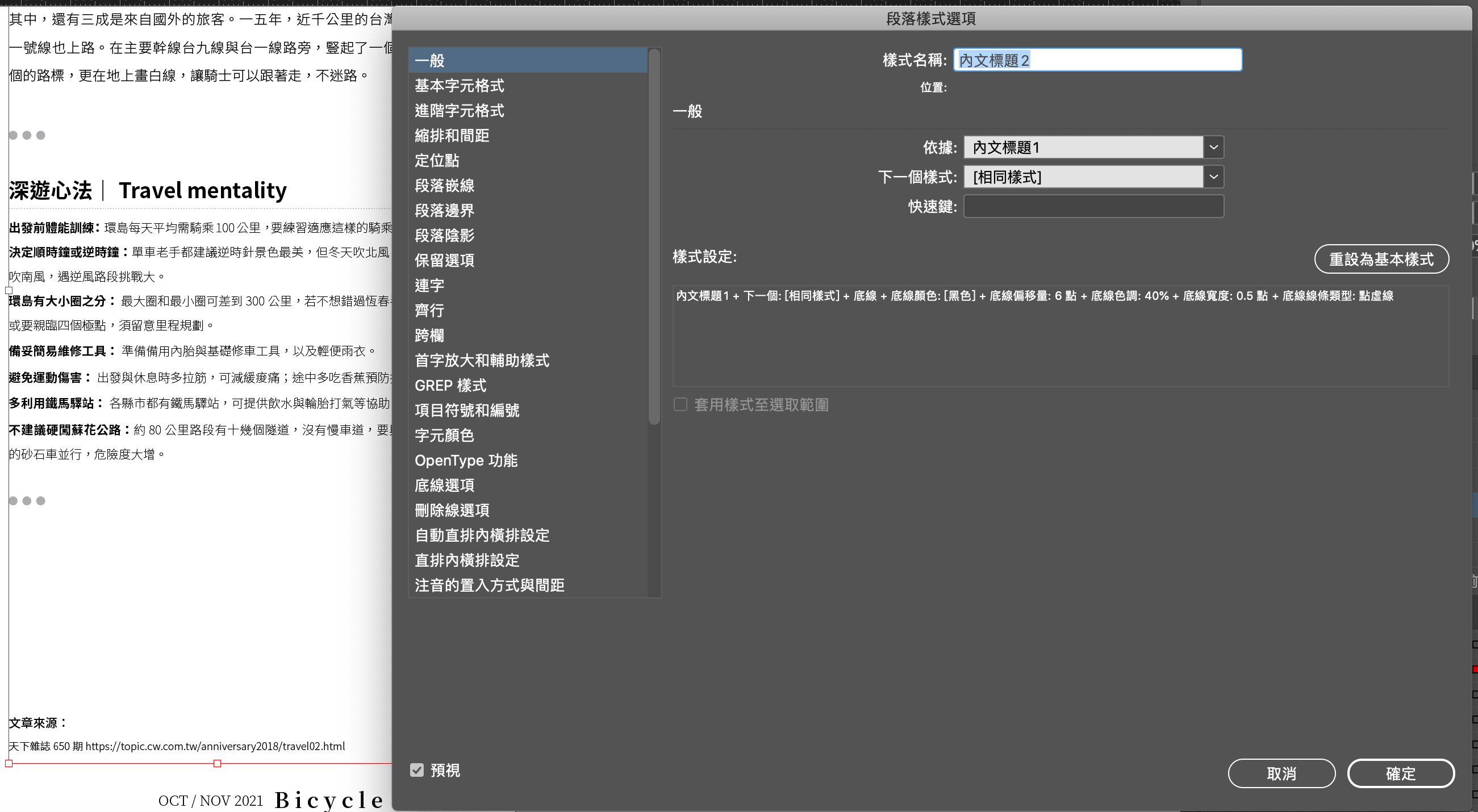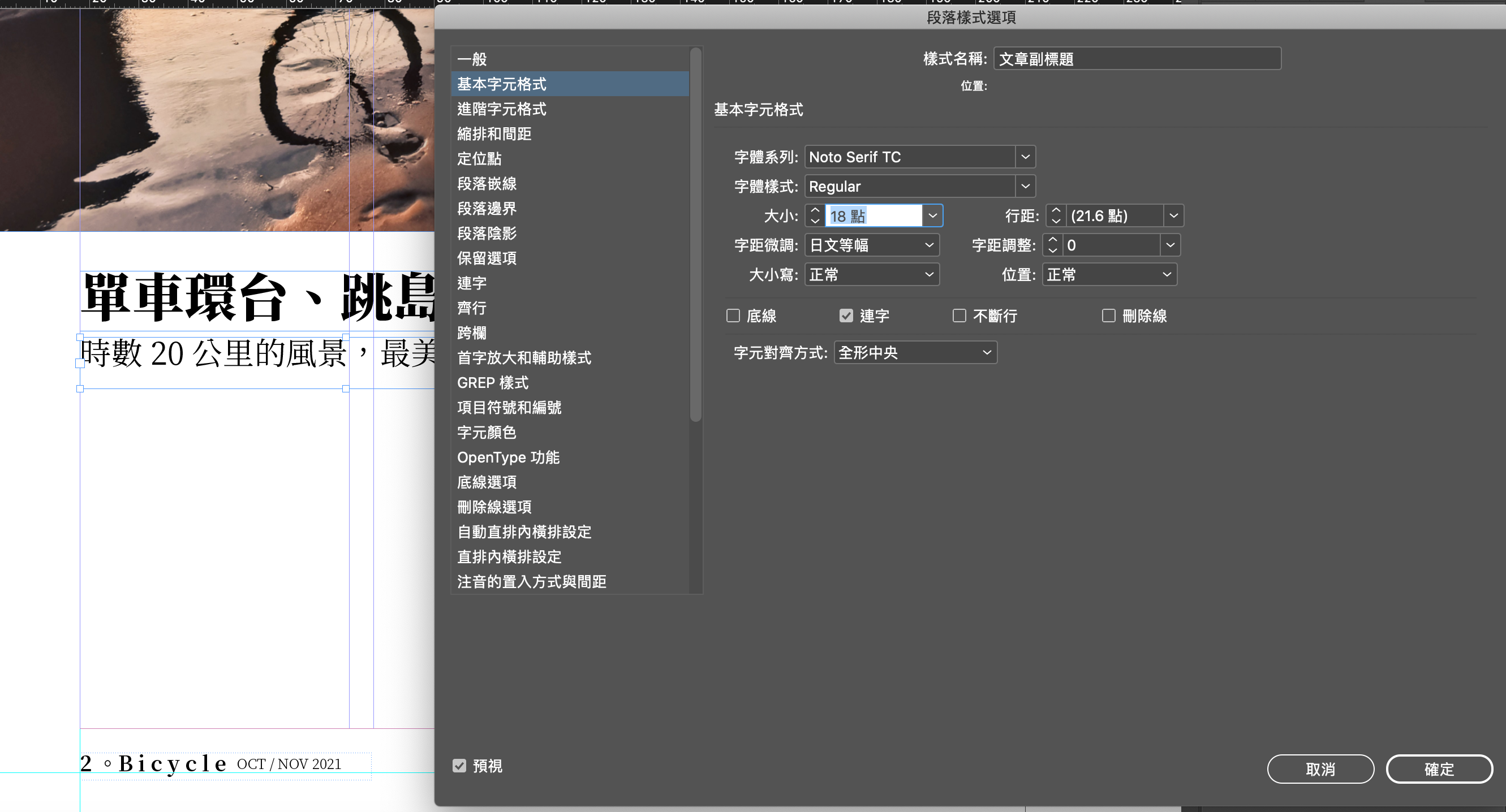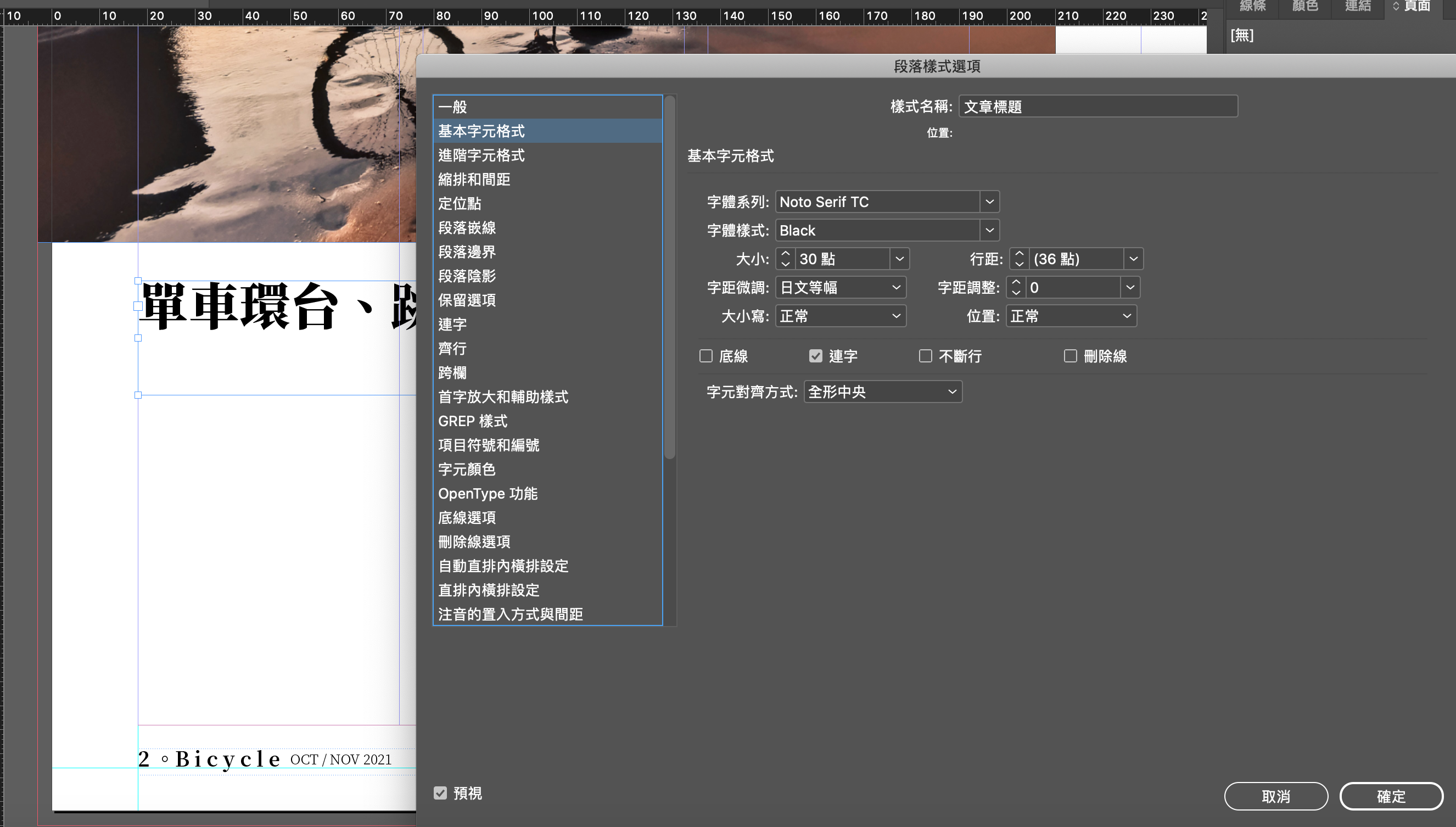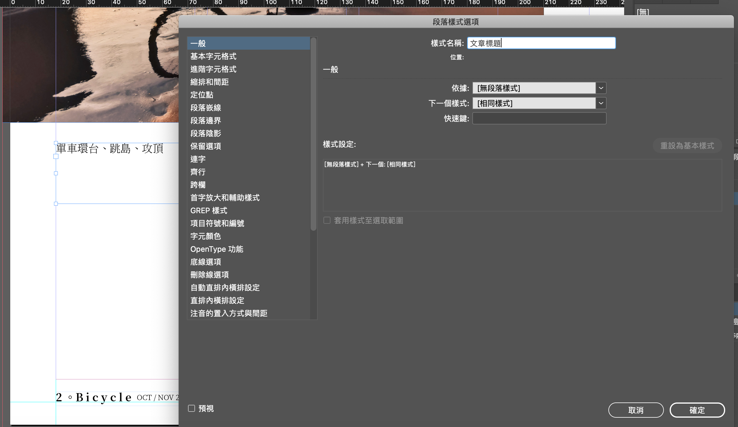 ID短文章編輯:主版設定、多頁文件編輯、頁碼製作、段落與文字樣式設定