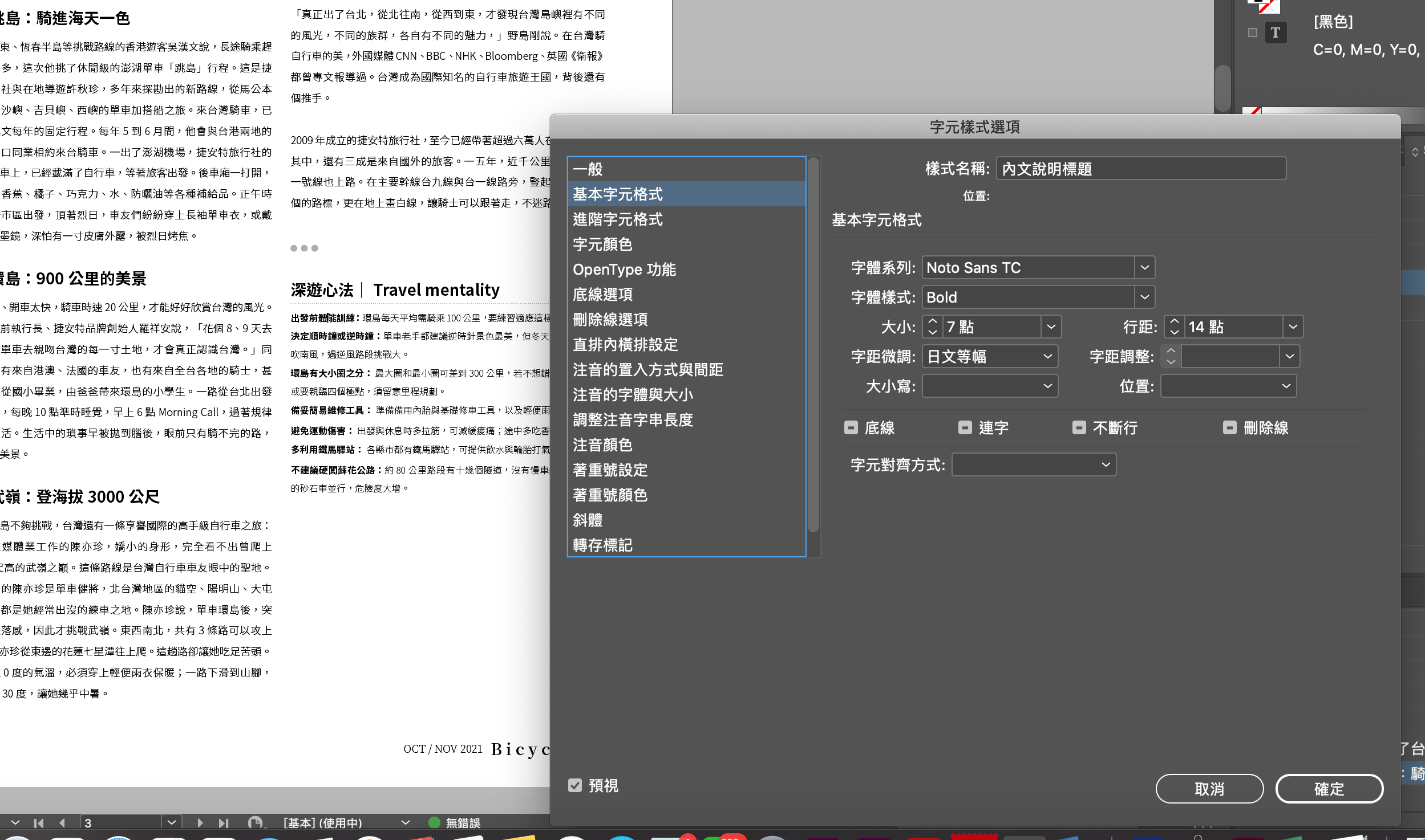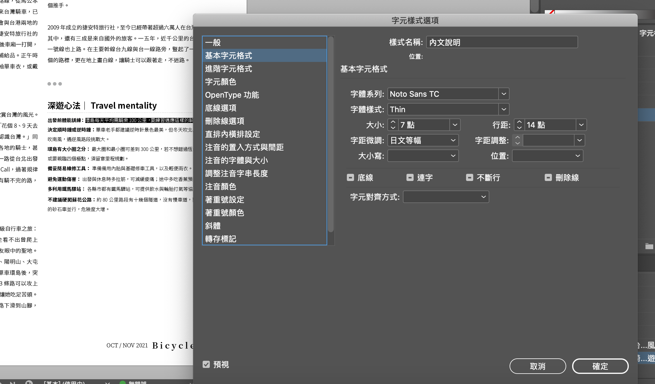 - 設定『內文說明』『字元樣式』。在同一行文字中,產生粗、細的效果。
