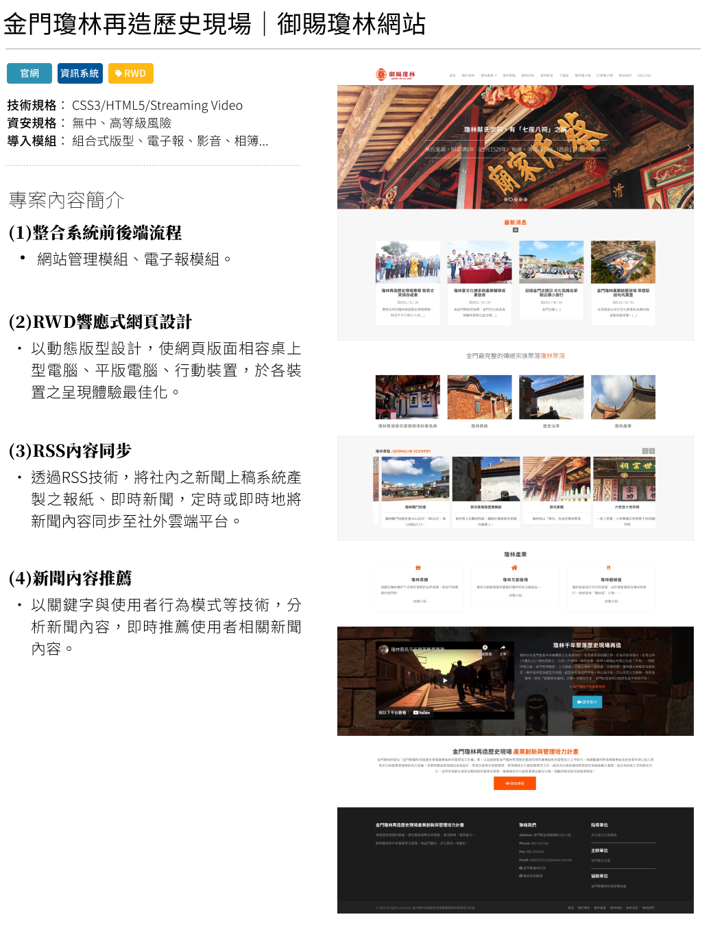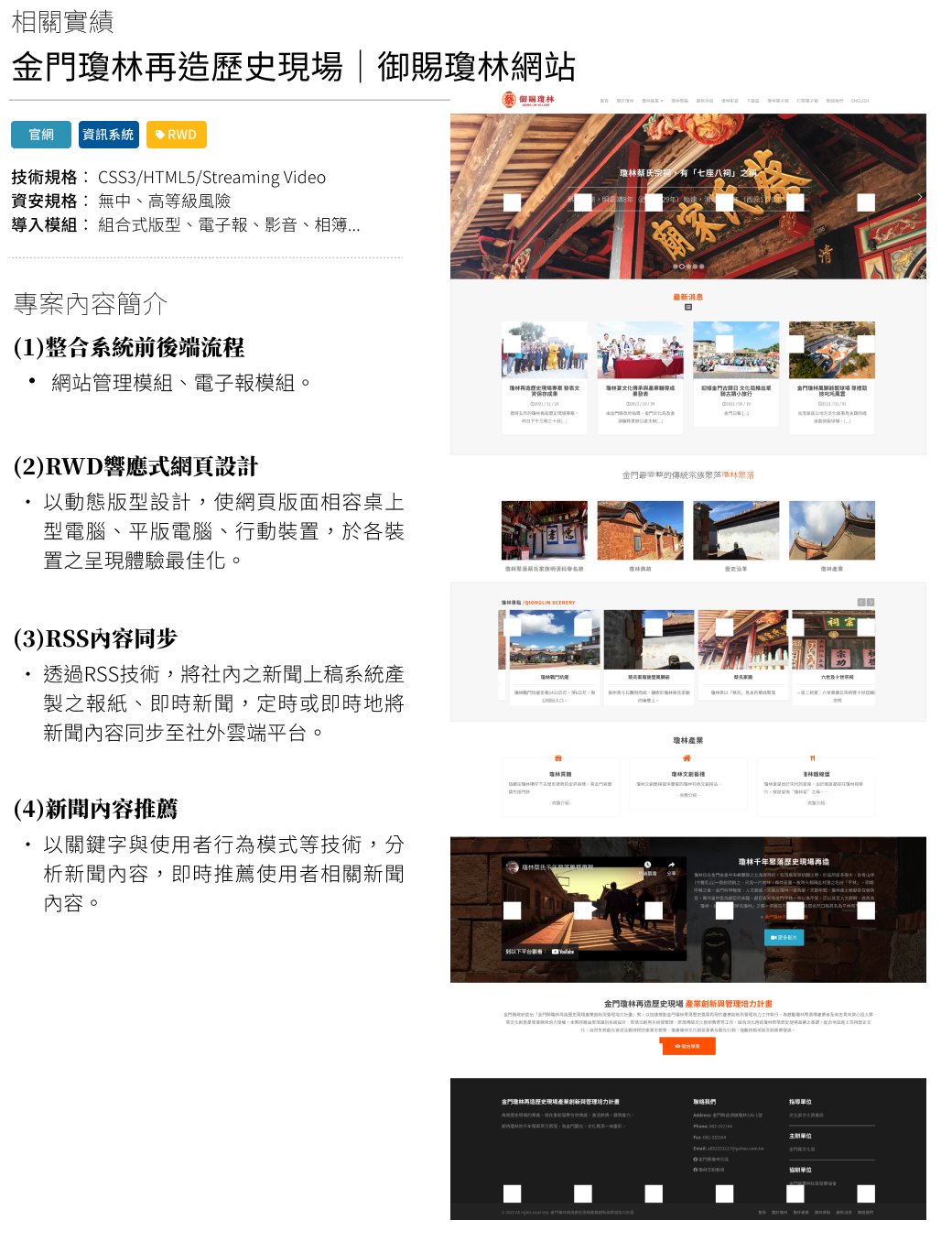 - 承作本案相關之經驗及目前承作之專案(國內外大型網站執行經驗、網站無障礙與響應式設計經驗)。