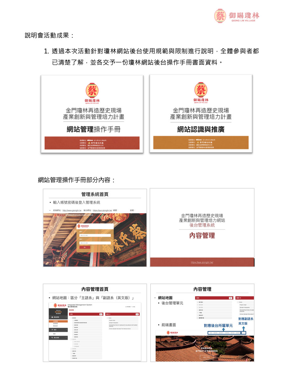 - 金門瓊林再造歷史現場 產業創新與管理培力計畫