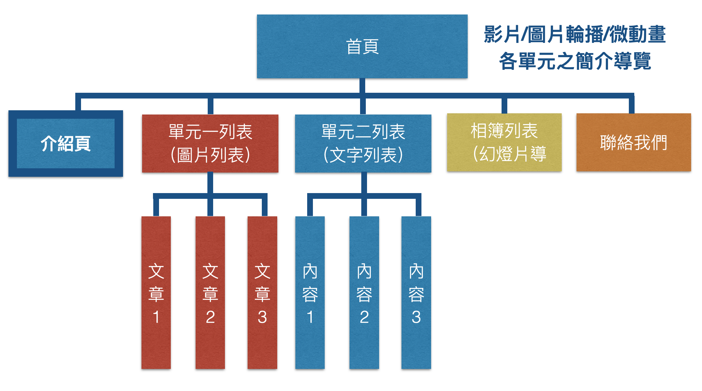 一般網站,進入首頁之後,首先選取的通常是介紹頁面,介紹這個網站的簡要介紹,常以『關於我們』命名,以快速地了解網站大致內容與主題核心。此版型也適用於任何介紹內容的頁面,可自行彈性運用。